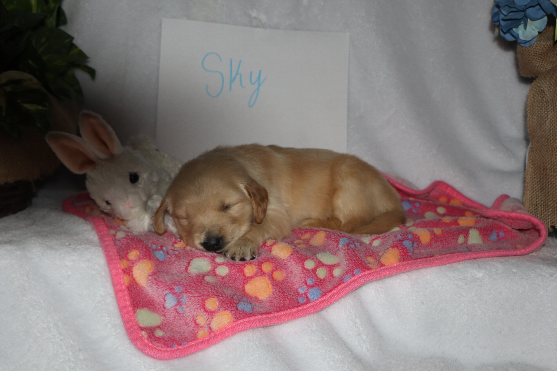 Sky tends to sit back and take in the world before joining the fun. She’s thoughtful, gentle, and affectionate — the kind of puppy who forms strong bonds with her people.